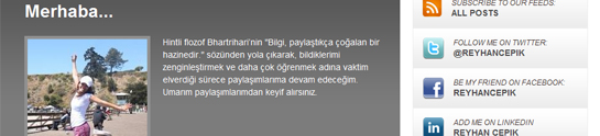 Düzenli olarak takip etmeye çalıştığım Reyhan Çepik'in Silikon Vadisi'nden haberler verdiği blogu. "Gurbete giden dönmez derler ya işte benim de aynen öyle oldu. Dil Okulu ve part time çalışma hayatından sonra Silikon Vadisi'nde kalmaya karar verdim" diyen Reyhan Çepik Fırsat Bu Fırsat sitesinin kurucusu ve aynı zamanda Webrazzi ve The Brand Age için yazılar yazıyor... Blogda vadideki gelişmelerin ve yaşam tarzının yanı sıra oradaki Türklerle yapılmış röportajlara da ulaşmak mümkün.